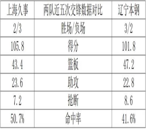 兩隊近五次交鋒數(shù)據(jù)對比: