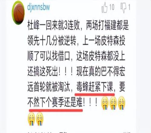 杜鋒這三個錯誤,只要犯少一個,都能避免被逆轉,這水平真的太差了。球迷也紛紛評論杜鋒,“杜鋒真是個蠢人!為什么在決勝局讓張皓嘉和胡明軒打那么長的時間?看看兩人的正負值!還有中間上焦泊喬干啥?連個球都拿不穩。國內得分最多的崔永熙和外援奎因第四節被DNP了,讓人失望的廣東及這個毒蜂,寒心毒蜂!”說杜鋒的錯誤葬送了比賽,沒有說錯。大家說呢?你對今天杜鋒的臨場指揮怎么看?