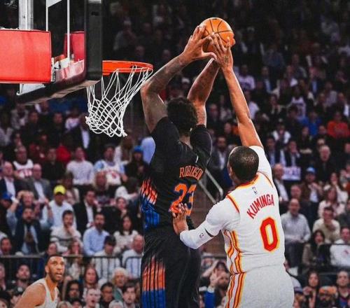 本場比賽,雙方在首發陣容上面,尼克斯這邊派出的是,布倫森,唐斯,阿奴諾比,布里奇斯和哈特。老鷹這邊派出的是,杰倫約翰遜,沃克,麥科勒姆,奧孔古和丹尼爾斯。首節比賽開始,唐斯持球突破上籃得手,打進本場比賽首個進球,麥科勒姆的中距離干拔也為老鷹開張,丹尼爾斯突襲籃下,飛身小拋投空心命中,哈特騎馬射箭挑籃還擊一球,布里奇斯45度角張手扔三分球一箭穿心,丹尼爾斯長驅直入沖擊籃下得手,奧孔古的正面三分球空心命中,庫明加沖擊籃下對抗上籃,打進還有加罰,布里奇斯手感火熱,追身三分再次打進。