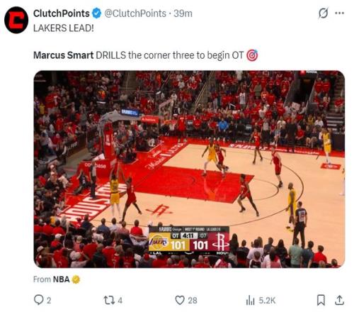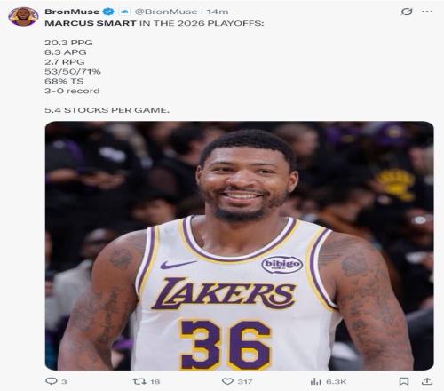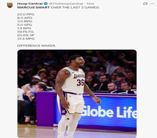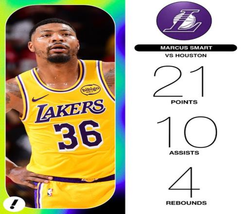 這場比賽湖人的贏球海報(bào)中心是馬庫斯-斯瑪特,沒錯(cuò),又是缸哥,他上一場就是贏球第一功臣,他在末節(jié)與加時(shí)賽的表現(xiàn)實(shí)在是太出色了。