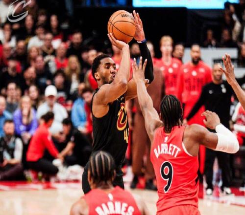危急時刻梅里爾打3分,米切爾終于發力,內突外投追平比分。暫停回來,米切爾助攻哈登命中三分,隨后米切爾造犯規,這是米切爾在猛龍兩個主場第一次拿到罰球!此后米切爾迎著巴恩斯再中三分,米切爾繼續造犯規,騎士前后打出14-2的高潮!此后裁判連續吹騎士犯規,巴雷特聯合英格拉姆追到只差2分!哈登助攻梅里爾三分止血,裁判又吹哈登對英格拉姆三分犯規。最后2分鐘,米切爾連續打鐵,哈登也投短了,巴雷特強攻追到只差1分。米切爾8秒違例,巴恩斯罰球反超。米切爾繼續打鐵,莫布里補籃也不中!