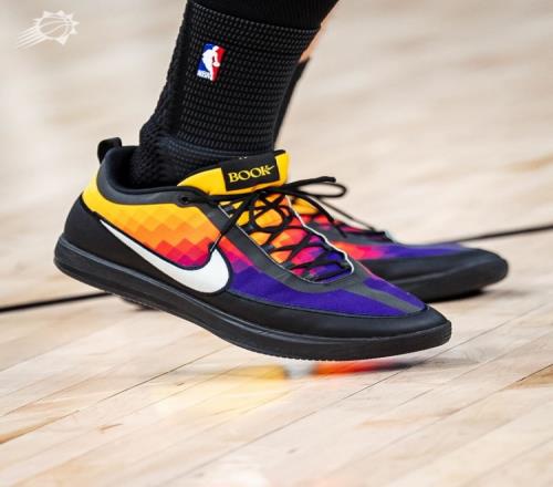 球隊(duì)曬出了賽前布克熱身的畫面,還有他腳上新配色球鞋的特寫。這雙球鞋是Book 2 “The Valley”配色。以鳳凰城都市區(qū)的昵稱“The Valley(山谷)”及地貌為靈感。