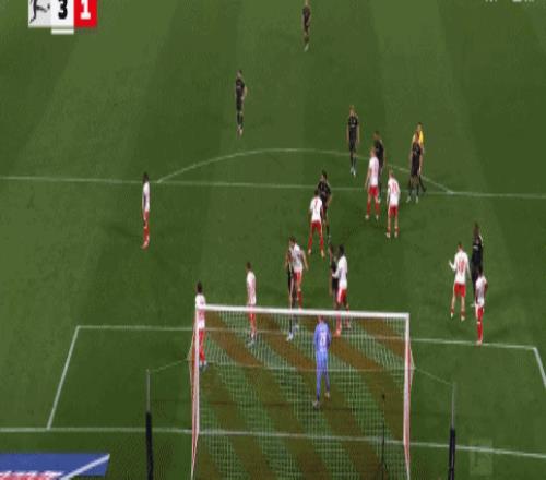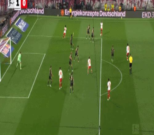第22分鐘,先下一城,芬克格拉夫外圍直接抽射破門,萊比錫1-0