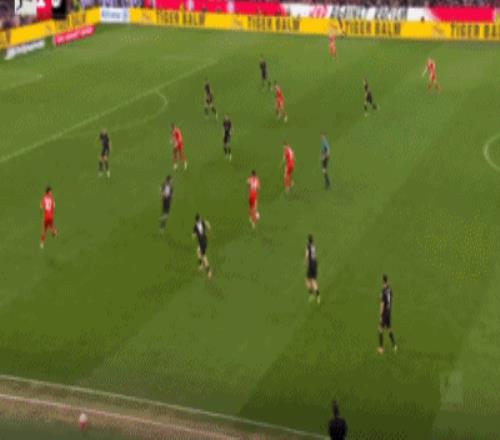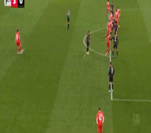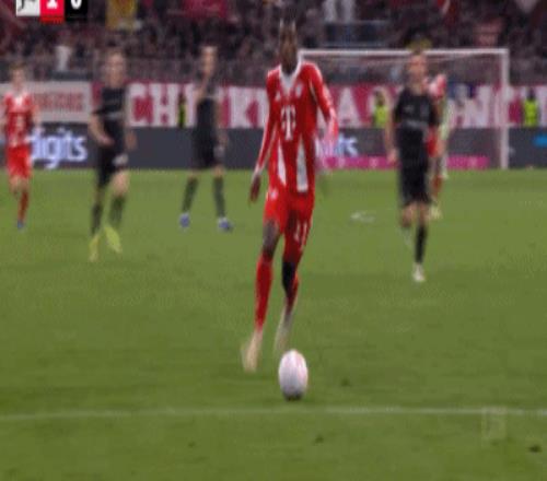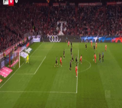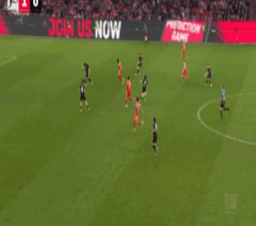 第32分鐘,格雷茨卡挑傳,迪亞斯凌空抽射破門,拜仁1-0門興