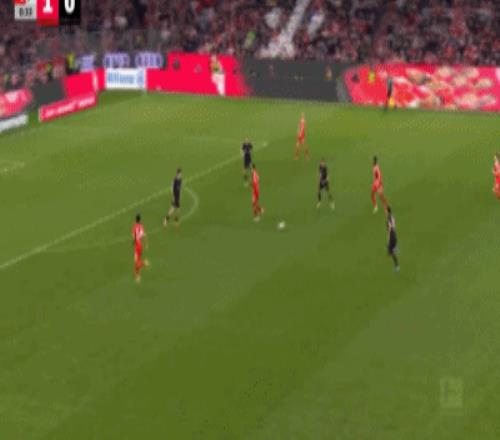 第45分鐘,迪亞斯橫傳,萊默爾破門,拜仁2-0門興