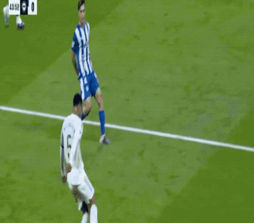 上半場補時階段,阿拉維斯圍攻皇馬球門,馬丁內(nèi)斯的射門擊中立柱,隊友的補射,被盧寧奮力撲出。