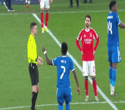 今年2月17日的歐冠淘汰賽附加賽皇馬1-0戰(zhàn)勝本菲卡的首回合比賽中,普雷斯蒂安尼被拍到用球衣遮住嘴與維尼修斯交談。