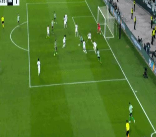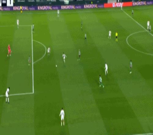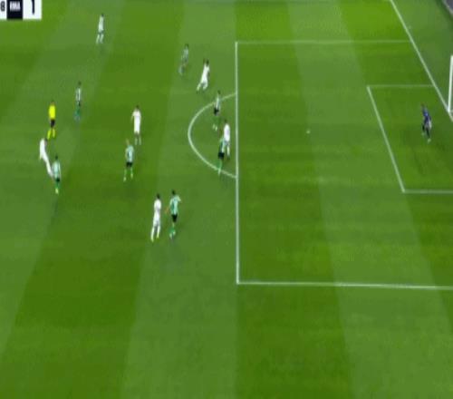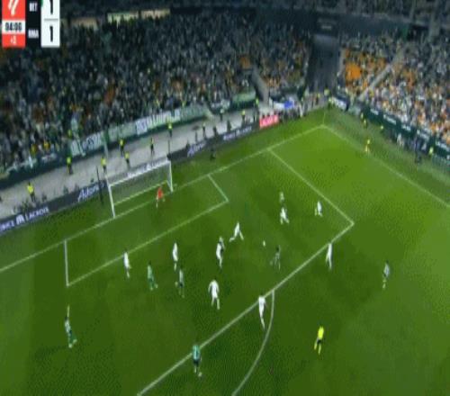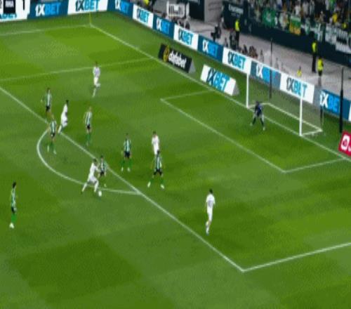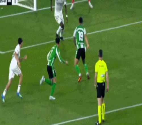 第94分鐘,門迪禁區內對抗的時候倒地,裁判示意比賽繼續,安東尼倒三角傳中,呂迪格攔截不遠,貝萊林推射命中,皇家貝蒂斯完成讀秒絕平,1-1!
