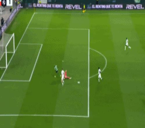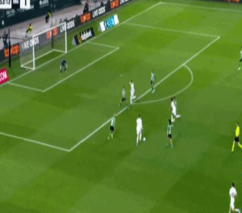 第74分鐘,伊斯科角球傳中,巴爾韋德解圍踢疵,納坦轉身掃射,蹭了一下卡馬文加折射偏出。