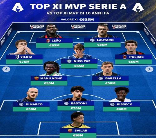 德轉(zhuǎn)意甲本賽季最貴11人陣容: