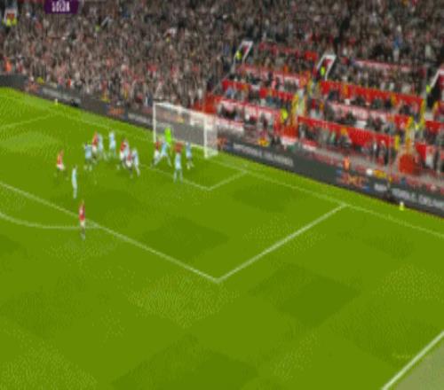 第11分鐘,曼聯的角球罰到禁區后點,馬奎爾頭球擺渡,卡塞米羅高高躍起,小角度泰山壓頂頭球破門!