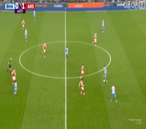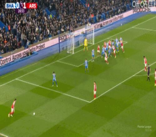 第9分鐘,薩卡右路內(nèi)切擊中巴萊巴稍稍變線破門,阿森納1-0布萊頓
