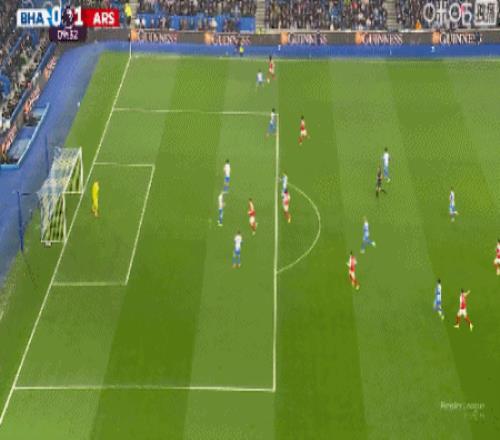第25分鐘,布萊頓快發(fā)任意球失誤,皮球直接擊中自家隊友
