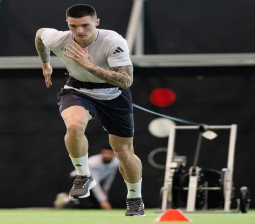 他練的不是什么油炸丸子、踩單車,而是純純的NFL級別爆發力特訓。核心科目只有一個:靜止狀態下的極限起步和瞬間加速。