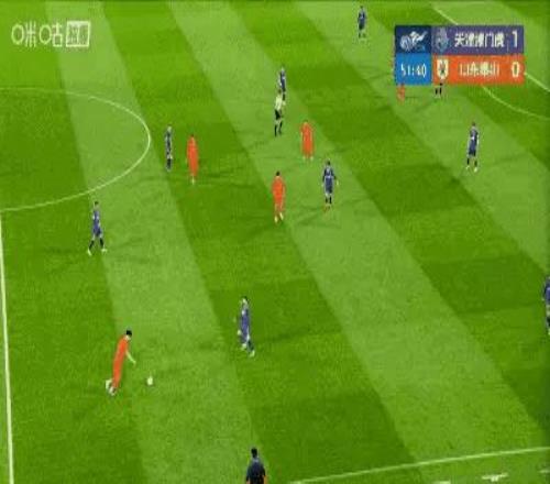 上半場第14分鐘,津門虎率先發難:閆炳良大腳開至前場,謝蒂內頭球后蹭,基萊斯得球轟出一腳世界波,津門虎1-0領先。
