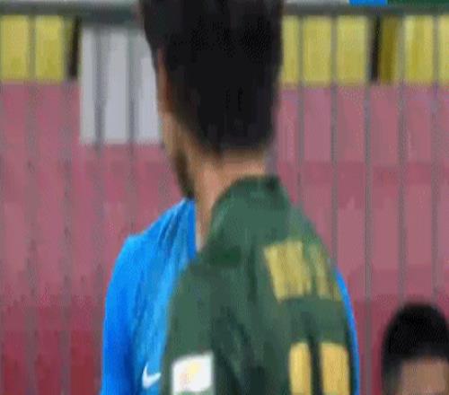 在韋林頓破門之后,趙博非常不滿,對著丟球的汪士欽大喊。韋林頓則再一次做出了姆巴佩標(biāo)志性的慶祝動作。