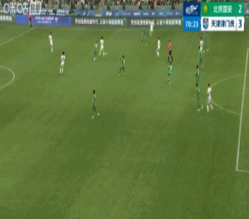 第70分鐘,在國安連進(jìn)兩球扳平比分后,哈達(dá)斯將球傳到后點(diǎn),李磊冒頂,后點(diǎn)的基萊斯凌空一推將球打進(jìn),為津門虎再次超出比分!
