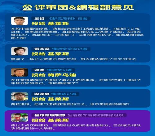 基萊斯本賽季第2次、也是登陸中超以來第5次榮膺懂球帝中超MVP,他6次梅開二度,5次斬獲MVP。基萊斯也追平了特謝拉(蘇寧)、費(fèi)萊尼、奧斯卡(海港)、克雷桑、王大雷的獲獎次數(shù),并列歷史第6位。